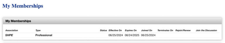 If so you may qualify for a free first year professional membership. You may qualify for a free complimentary membership if you are a graduating SHPE student member who has a paid active student membership within the past year.